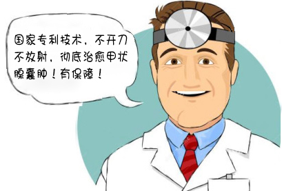 国家专利技术:国家专利技术在治甲状腺囊肿上,根据患者囊肿的大小、边缘情况、内部血流情况等,在美国GE四维彩超下,将甲状腺囊肿放大数十倍,即使微小的潜在囊肿也可清晰呈现,通过微创介入,一次清除。不开刀、不住院、不用终身服药,治后贴个创口贴即可出院。